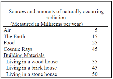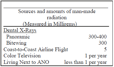 Radiation is a normal part of our everyday lives. It is used in medicine and dentistry for diagnosis and treatment in the form of X-rays and gamma rays. Naturally occurring radioactivity is found in the soil, water, air, and building materials. In Arkansas, the average radiation exposure from naturally occurring and man-made radiation is up to 180 millirem * per year. Most studies indicate that radiation exposure of up to several thousand millirem per year result in no measurable health effect.